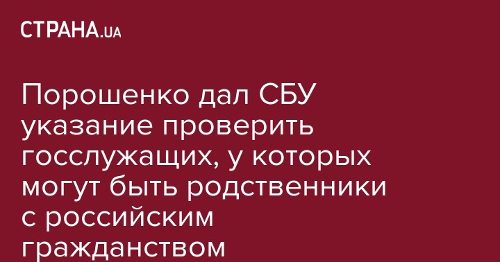 Порошенко дал СБУ указание проверить госслужащих, у которых могут быть родственники с российским гражданством