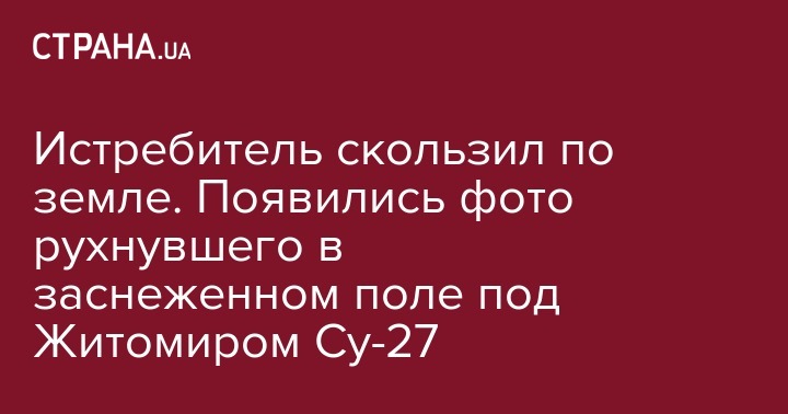 Истребитель скользил по земле. Появились фото рухнувшего в заснеженном поле под Житомиром Су-27