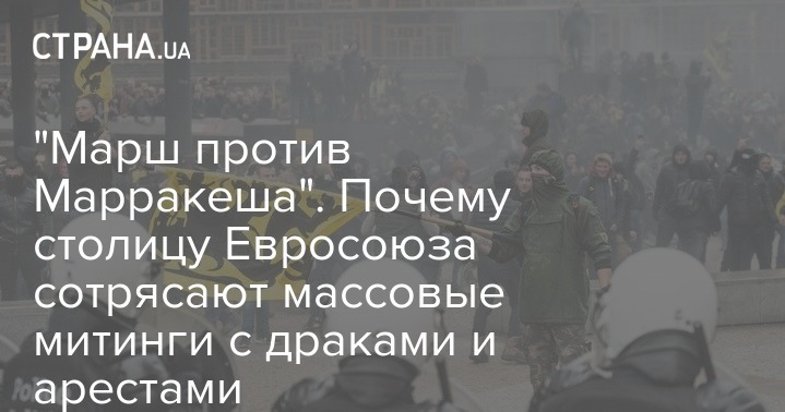 В Брюсселе на так называемый "марш против Марракеша" сначала вышли около 500 человек, но вскоре их число выросло до 5,5 тысяч. Это переросло в массовые аресты и столкновения протестующих с полицией.