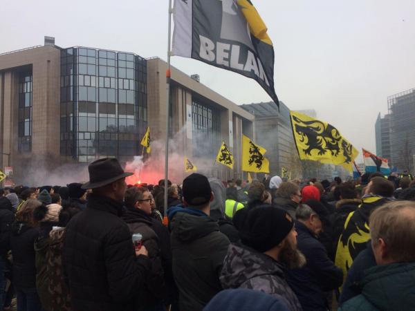 После того как около 400 демонстрантов из фламандского националистического движения Voorpost начали забрасывать камнями и другими предметами здание Еврокомиссии, полиция применила слезоточивый газ и водомет. Протестующие из марша, созванного по инициативе ультраправых организаций, забросали камнями также полицию.
