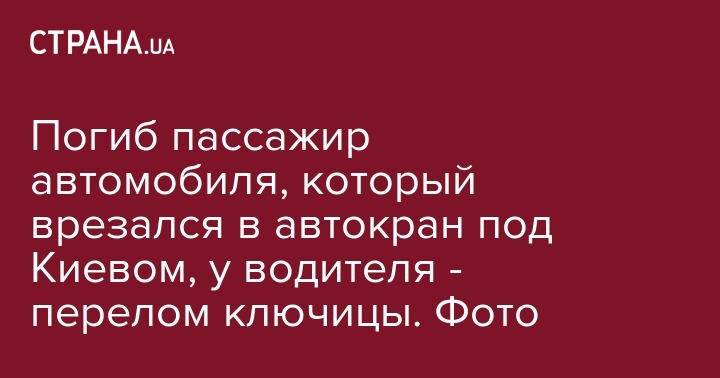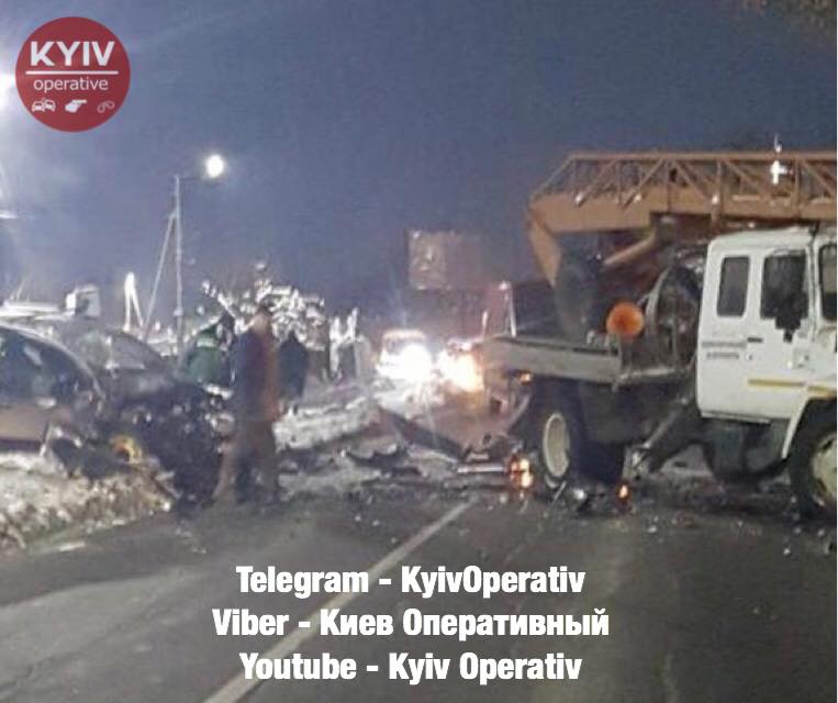 Погиб пассажир автомобиля, который врезался в автокран под Киевом, у водителя - перелом ключицы. Фото