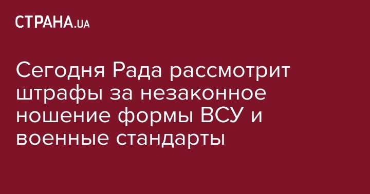 Сегодня Рада рассмотрит законопроекты №9217 о штрафах за незаконное ношение формы Вооруженных сил Украины, №8370 об определении термина "военная стандартизация", №6777 о строительстве объектов пограничной инфраструктуры в прибрежных защитных полосах и №9285 о создании территориальных центров комплектования и соцподдержки на базе военкоматов в первом чтении.