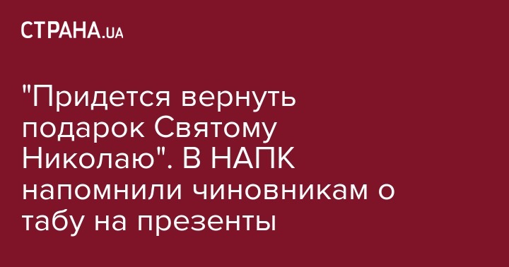 Накануне Дня Святого Николая Национальное агентство по вопросам предотвращения коррупции (НАПК) напомнило чиновникам, какие подарки им нельзя принимать. Об этом НАПК пишет на своей странице в Facebook.