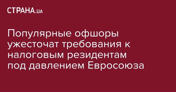 Известные офшорные зоны меняют требования к налоговым резидентам. Изменения в законодательстве офшоров проходят под давлением Евросоюза и должны быть приняты до конца года. Каймановы и Британские Виргинские острова, Бермуды, Мэн и Джерси готовы обязать компании подтверждать свое экономическое присутствие, в частности, открывать реальные офисы и нанимать сотрудников, пишет Коммерсант.