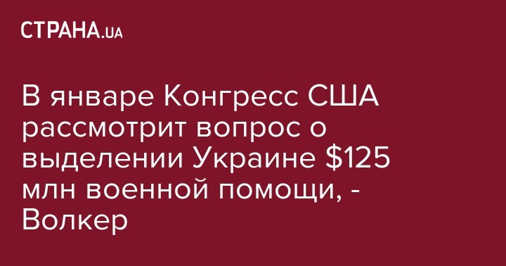 В январе Конгресс США рассмотрит вопрос о выделении Украине $125 млн военной помощи, - Волкер