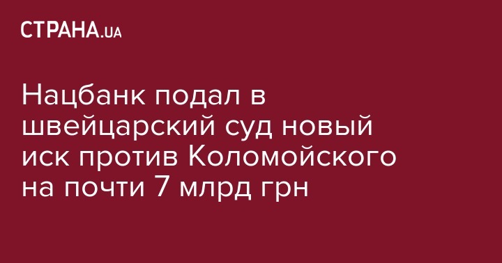 Нацбанк подал в швейцарский суд новый иск против Коломойского на почти 7 млрд грн