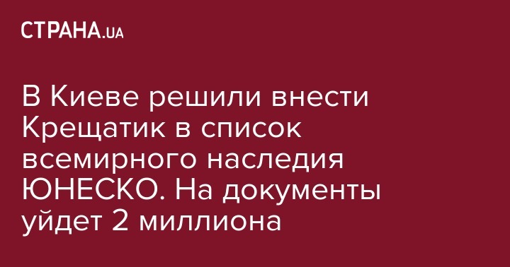 В мэрии Киева планируют разработать научно-проектную документацию, чтобы внести улицу Крещатик в список всемирного наследия Организации Объединенных Наций по вопросам образования, науки и культуры (ЮНЕСКО). На разработку документации запланировали выделить 1,8 млн грн на 3 года. Об этом сообщает пресс-служба КГГА.
