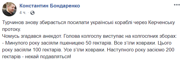 "Турчинов снова собирается посылать украинские корабли через Керченский пролив.