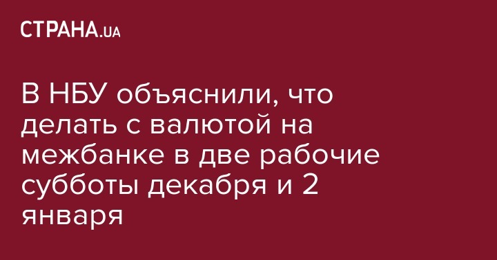 В НБУ объяснили, что делать с валютой на межбанке в две рабочие субботы декабря и 2 января