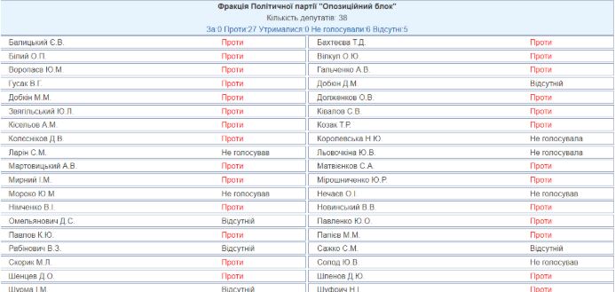 Единогласно "за", за исключением нескольких отсутствовавших, проголосовали Блок Петра Порошенко, Народный фронт, Самопомощь и Радикальная партия.