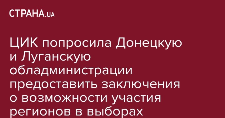Центральная избирательная комиссия (ЦИК) просит Донецкую и Луганскую областные государственные администрации - областные военно-гражданские администрации предоставить ей до 28 декабря заключения относительно возможности организации подготовки и проведения выборов президента, которые назначены на 31 марта 2019 года, во входящих в соответствующие области территориальных избирательных округах. Это обращение было принято на заседании ЦИК в четверг, передают "Украинские новости".