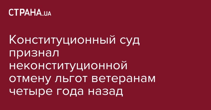 Большая палата Конституционного Суда Украины признала незаконной отмену ряда льгот (бесплатные лекарства, 50%-ная скидка на квартплату и тому подобное) для ветеранов войны, участников боевых действий, а также лиц, имеющих особые заслуги перед Родиной, если доход их семьи в расчете на одно лицо за предыдущие шесть месяцев превышал минимальный льготный доход.