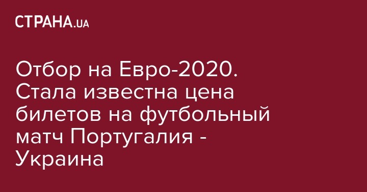 Федерация футбола Португалии установила цены на билеты на матч со сборной Украины в рамках отбора Евро-2020. Об этом сообщается на сайте ФФУ.