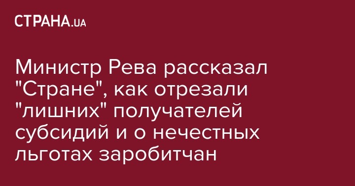 Министр соцполитики Андрей Рева рассказал "Стране", как происходит верификация субсидиантов и почему заробитчане попали в когорту тех, кому субсидии могут урезать.