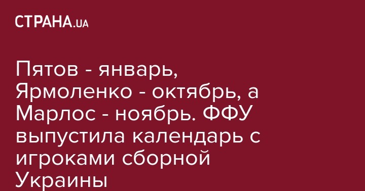 Пятов - январь, Ярмоленко - октябрь, а Марлос - ноябрь. ФФУ выпустила календарь с игроками сборной Украины