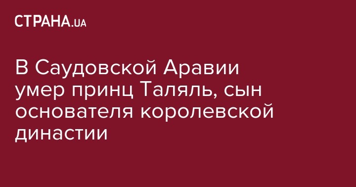 В Саудовской Аравии в возрасте 87 лет умер сын основателя королевства - принц Таляль Абдель Азиз Аль Асуд, который был двадцатым сыном первого короля Абдель Азиза, родоначальника династии Аль Сауд. Об этом сообщает телеканал Al Arabiya со ссылкой на сообщение в Twitter его сына, бизнесмена Валида бен Таляля.