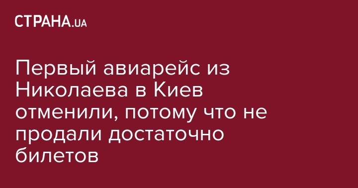 Первый авиарейс из Международного аэропорта "Николаев" в Киев, назначенный на 22 декабря, отменили из-за низкого количества проданных билетов. Он перенесен на 26 декабря.