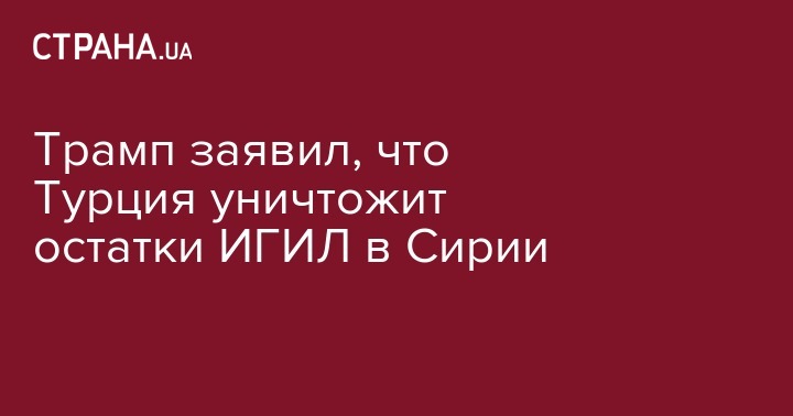Президент Турции Реджеп Эрдоган заявил о намерении добить оставшиеся силы террористической организации "Исламское государство" в Сирии. Об этом в соцсети написал глава США Дональд Трамп, ссылпаясь на недавнюю беседу с турецким лидером.