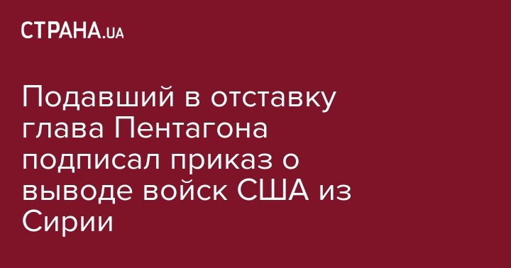 Подавший в отставку глава Пентагона подписал приказ о выводе войск США из Сирии