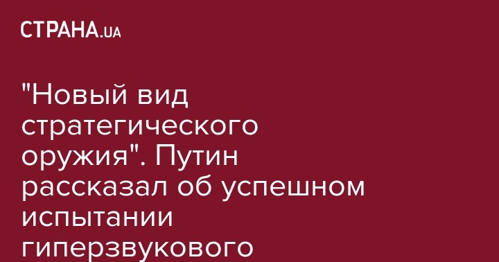 "Новый вид стратегического оружия". Путин рассказал об успешном испытании гиперзвукового "Авангарда"