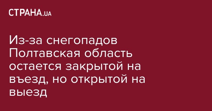 Из-за снегопадов Полтавская область остается закрытой на въезд, но открытой на выезд