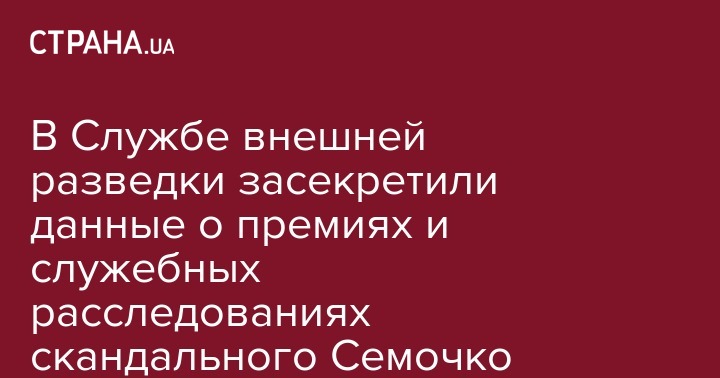 Соответственно, Служба внешней разведки утверждает, что не имеет правовых оснований предоставить ответы на вопросы: награждался ли Семочко ведомственными отличиями, премиями или поощрениям, были ли применены к нему дисциплинарные взыскания и проведены ли служебные расследования.
