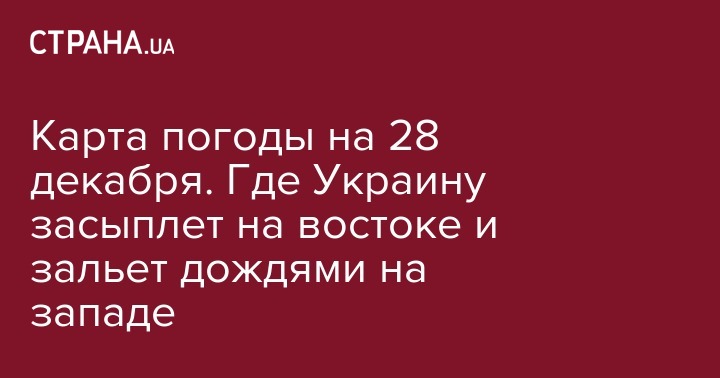 Карта погоды на 28 декабря. Где Украину засыплет на востоке и зальет дождями на западе