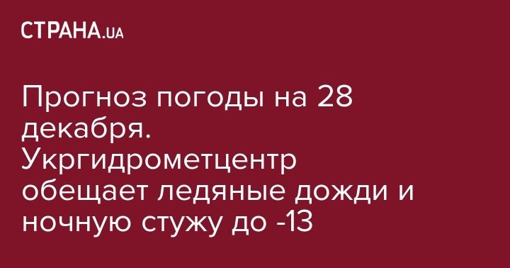 Прогноз погоды на 28 декабря. Укргидрометцентр обещает ледяные дожди и ночную стужу до -13