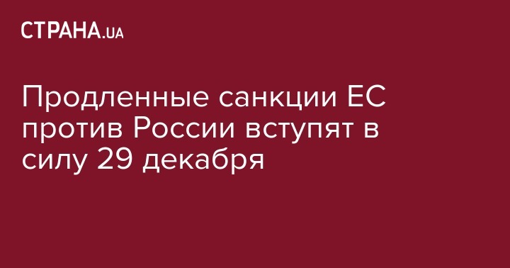 Сегодня, 28 декабря, официальный журнал Евросоюза опубликовал решение о продлении секторальных санкций против России в ответ на агрессию против Украины. Решение вступит в силу на следующий день после публикации, то есть 29 декабря.