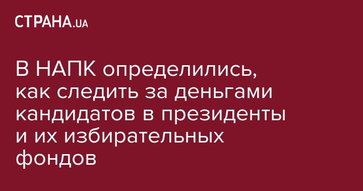 В НАПК определились, как следить за деньгами кандидатов в президенты и их избирательных фондов