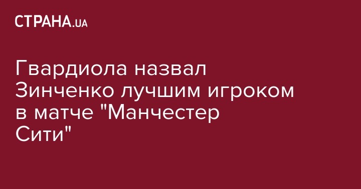Гвардиола назвал Зинченко лучшим игроком в матче "Манчестер Сити"