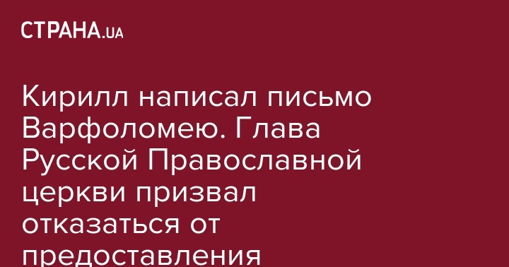 Кирилл написал письмо Варфоломею. Глава Русской Православной церкви призвал отказаться от предоставления автокефалии ПЦУ