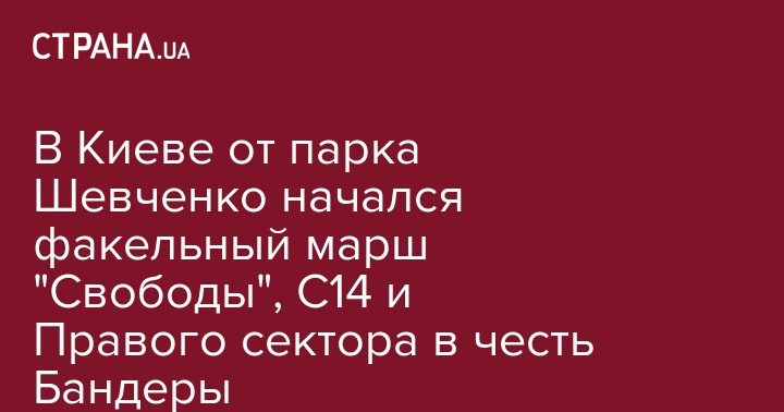 В Киеве начался марш представителей ВО "Свобода", представителей С14, Правого сектора и других радикалов в честь 110-летия одного из руководителя ОУН Степана Бандеры. Об этом передает корреспондент "Страны".