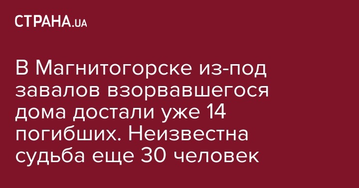 Уточняется, что среди 14 погибших, тела которых уже извлечены из-под руин, один ребенок.  Судьба около 30 человек остается неизвестной.