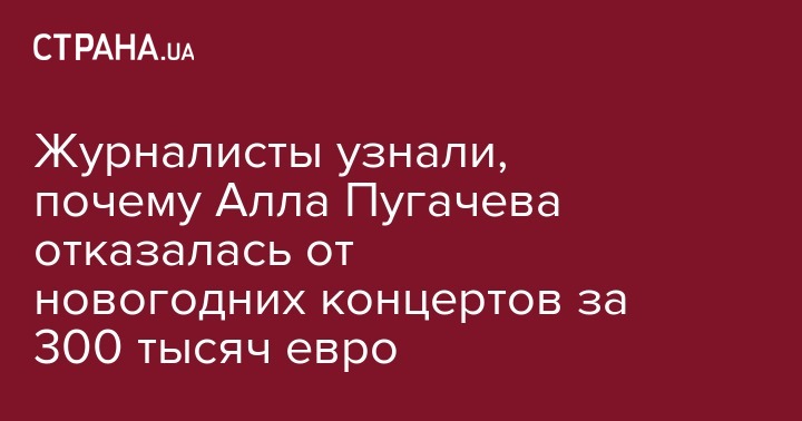 Журналисты узнали, почему Алла Пугачева отказалась от новогодних концертов за 300 тысяч евро