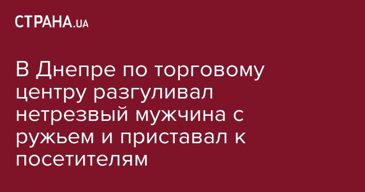 В Днепре неизвестный мужчина с охотничьим ружьем разгуливал по торговому центру и приставал к посетителям. Он находился в состоянии алкогольного опьянения и был задержан правоохранителями.