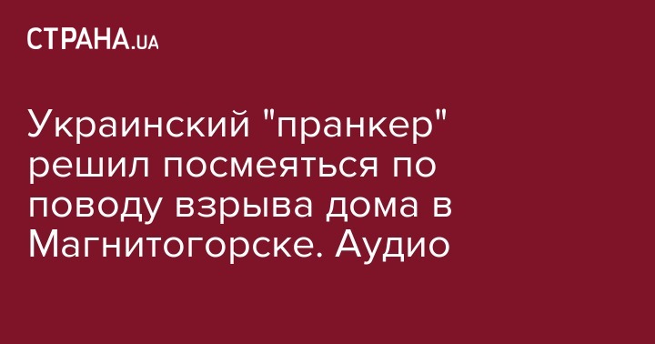 Украинский блогер и пранкер Евгений Вольнов, известный своими неоднозначными выходками, позвонил в отдел ФСБ Магнитогорска по поводу взрыва дома 31 декабря. Напомним, здесь обрушился подъезд десятиэтажки. Предварительная версия ЧП - взрыв бытового газа, погибли более 30 человек.