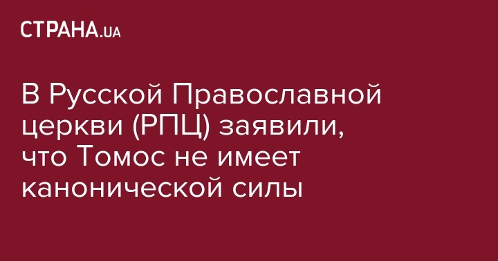 В Русской Православной церкви (РПЦ) заявили, что Томос не имеет канонической силы