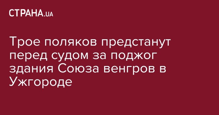 Национальная прокуратура Польши передала в суд материалы дела о поджоге дома Общества венгерской культуры Закарпатья, который случился в феврале 2018 года. Об этом пишет tvp.info.