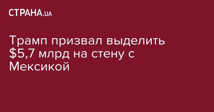 Президент США Дональд Трамп с помощью телевидения обратился к американцам и рассказал им о кризисе на границе с Мексикой, а также призвал выделить на строительство стены между двумя странами $5,7 млрд. Об этом пишет "Коммерсант".