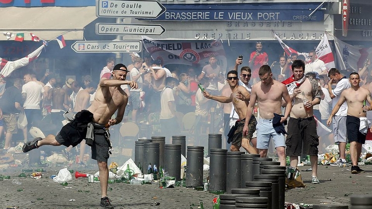 В матче первого тура группы В сборные России и Англии сыграли вничью на стадионе "Велодром" в Марселе – 1:1. По окончании встречи около 50 российских болельщиков, прорвав оцепление стюардов, прорвались в сектор с английскими фанатами и начали избивать всех, кто находился там.