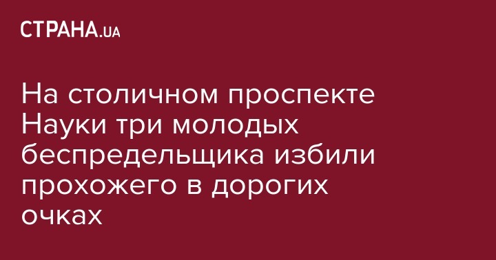 Три молодых человека в неадекватном состоянии вечером 9 января набросились на прохожего на пересечении проспекта Науки и улицы Лысогорской в Киеве, сломали ему очки стоимостью в 200 долларов и сбежали. Об этом сообщается на странице Киев Оперативный в Facebook.