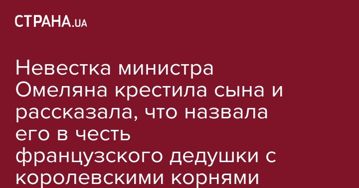 Невестка министра Омеляна крестила сына и рассказала, что назвала его в честь французского дедушки с королевскими корнями
