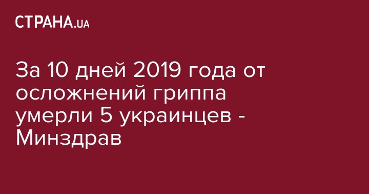 За 10 дней 2019 года от осложнений гриппа умерли 5 украинцев - Минздрав
