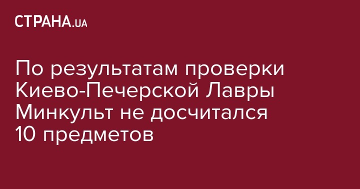 В Министерстве культуры Украины заявили, что по результатам инвентаризации в Киево-Печерской лавре не досчитались 10 предметов. Об этом речь идет в официальном комментарии руководителя пресс-служба Минкульта Юлии Даценко, размещенном на YouTube-канале ведомства.
