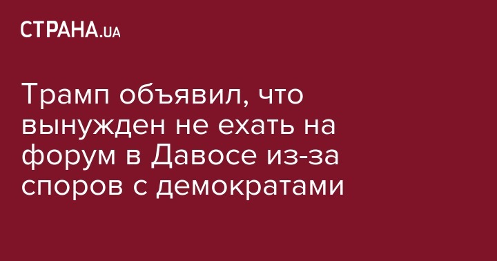 Президент США Дональд Трамп заявил, что из-за разногласий с Демократической партией он вынужден отменить поездку на Всемирный экономический форум в Давос. Об этом он написал в своем микроблоге в Twitter.