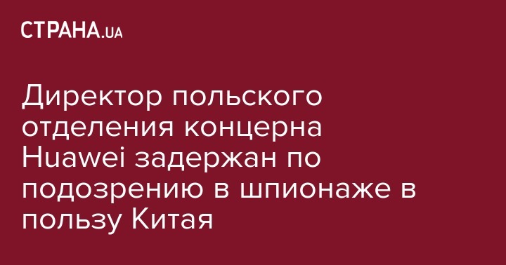 Директор польского отделения концерна Huawei задержан по подозрению в шпионаже в пользу Китая