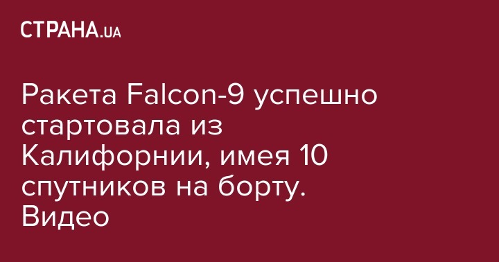 Ракета Falcon-9 успешно стартовала из Калифорнии, имея 10 спутников на борту. Видео