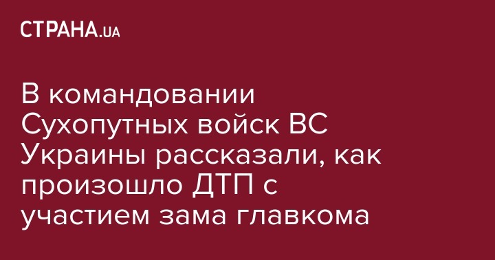 "Вечером в пятницу, 11 января, на трассе Николаев-Благовещенское, вблизи населенного пункта Себин Новоодесского района Николаевской области произошло дорожно-транспортное происшествие с участием военного автомобиля Hyundai, в результате которого пострадали водитель и заместитель командующего Сухопутных войск ВС Украины по логистике - начальник логистики генерал-лейтенант Сергей Кропивченко", – говорится в сообщении на странице ведомства в Facebook в пятницу вечером.