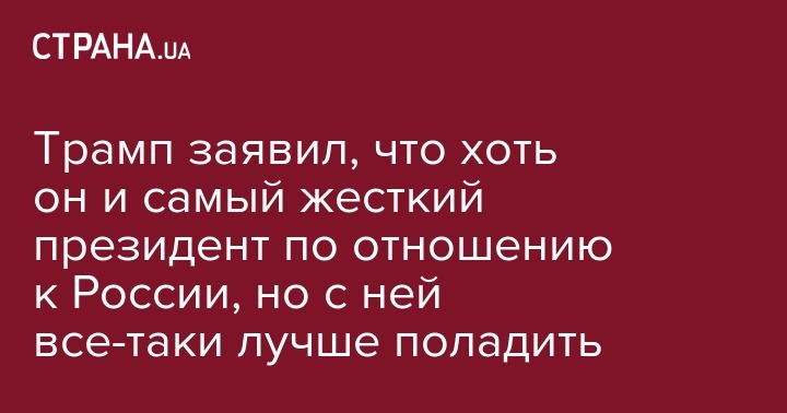 Трамп заявил, что хоть он и самый жесткий президент по отношению к России, но с ней все-таки лучше поладить
